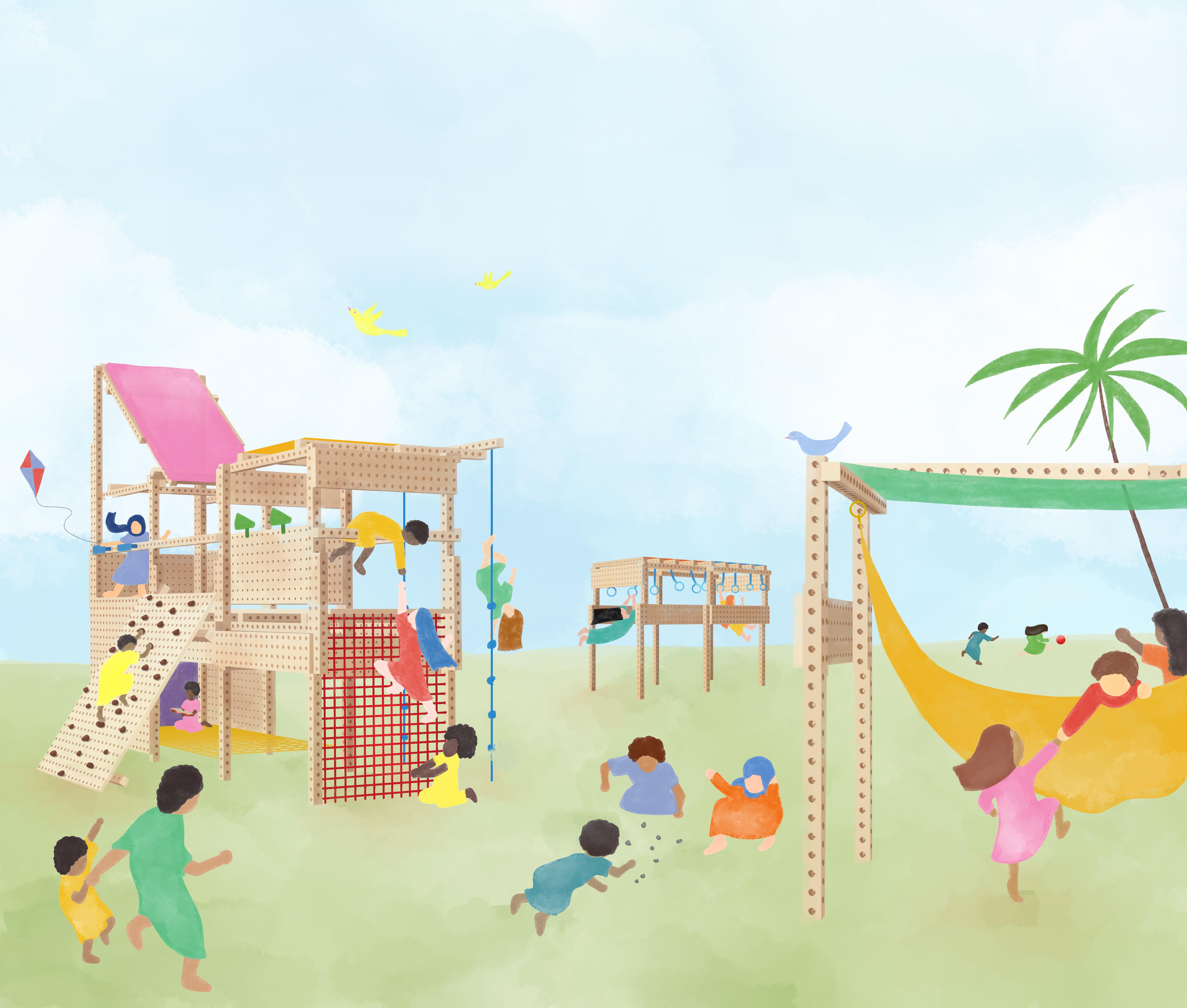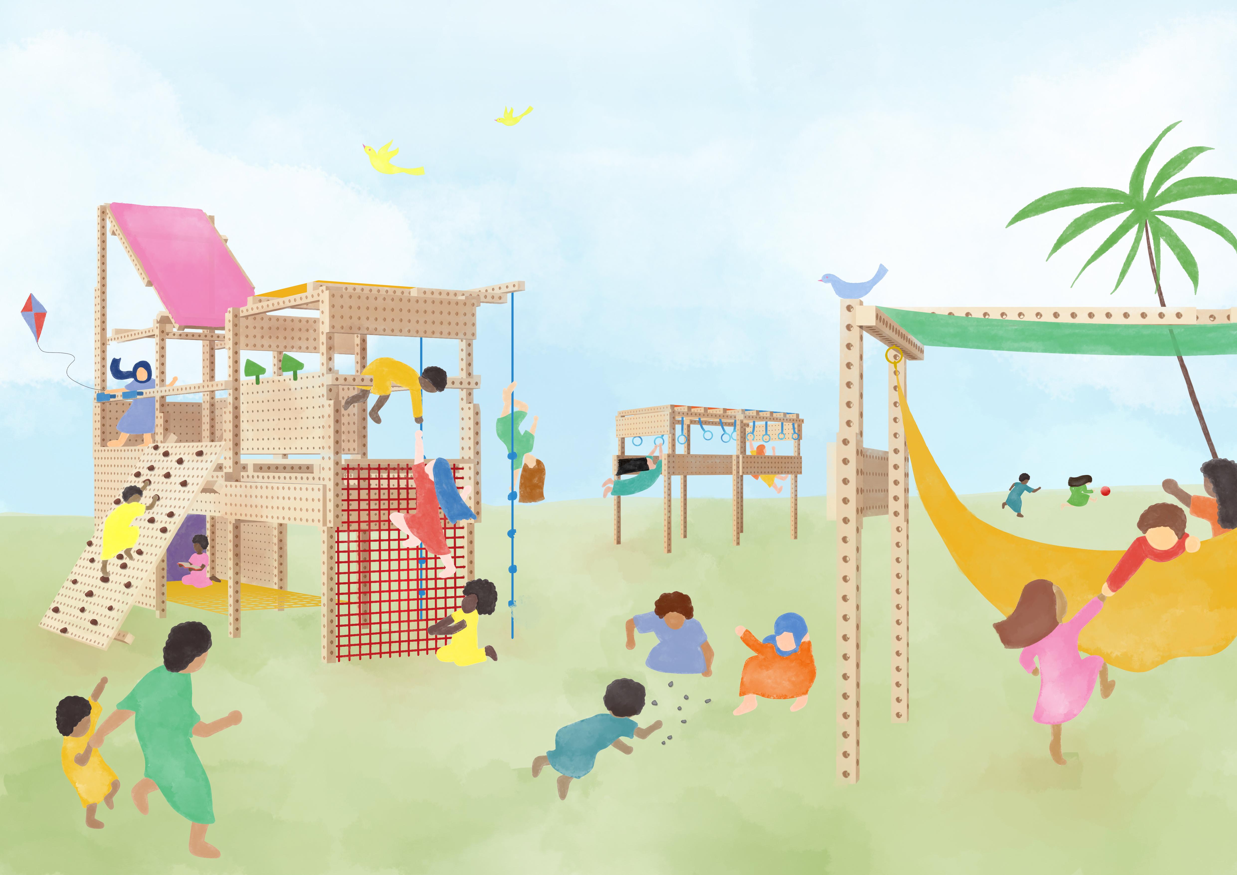 The Playrise team designed a reconfigurable structure that enables children to acquire essential life skills - from making friends, resolving conflict and building confidence, to learning how to build, decorate and look after things together. It contributes to children’s health and long-term wellbeing with every skip, swing and slide.